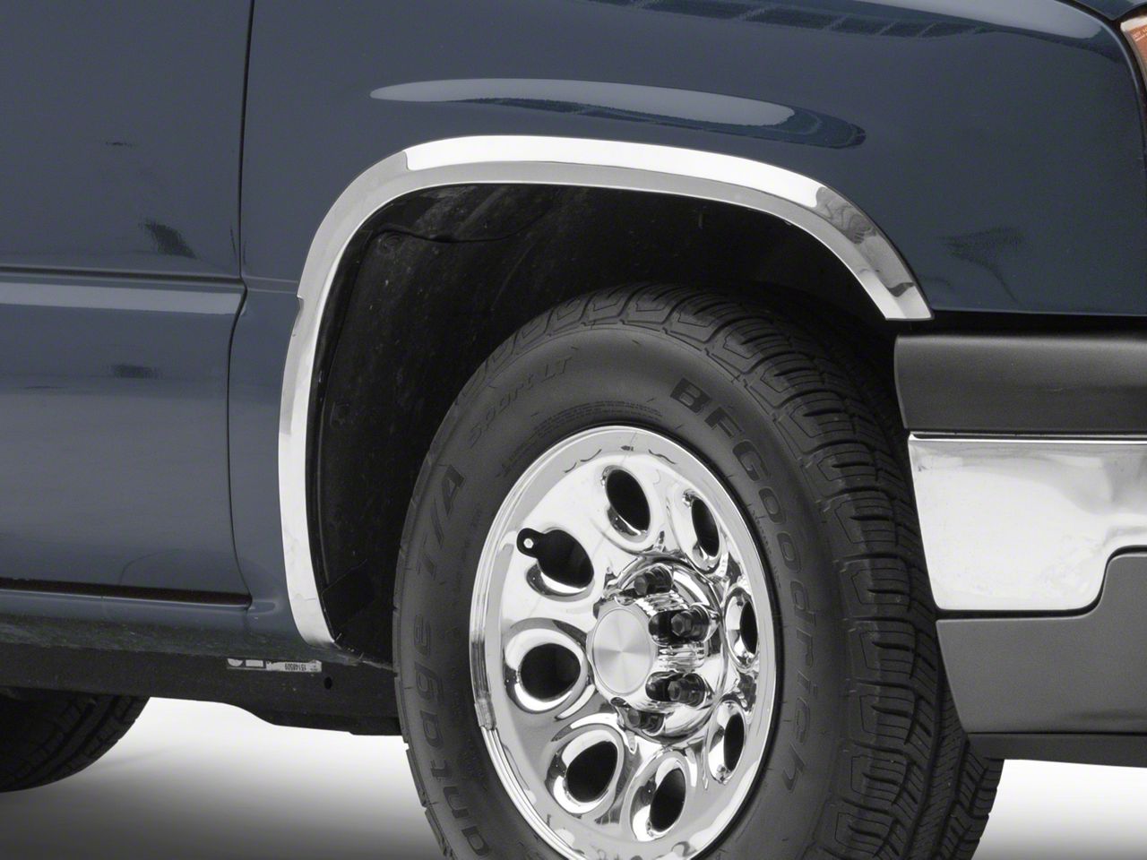 Application. This Stainless Steel Polished Fender Trim was designed to fit all 1999-2006 Chevy Silverado 1500 models.