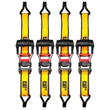 Enhanced Cargo Security. The CAT 16-foot x 1-1/2-Inch Ratchet Tie Down Set with Soft Loops is designed to provide superior cargo security for various applications. The high-strength webbing ensures your cargo remains firmly in place during transport, reducing the risk of shifting and potential damage. This tie-down set is ideal for securing heavy loads, offering peace of mind and improved safety.