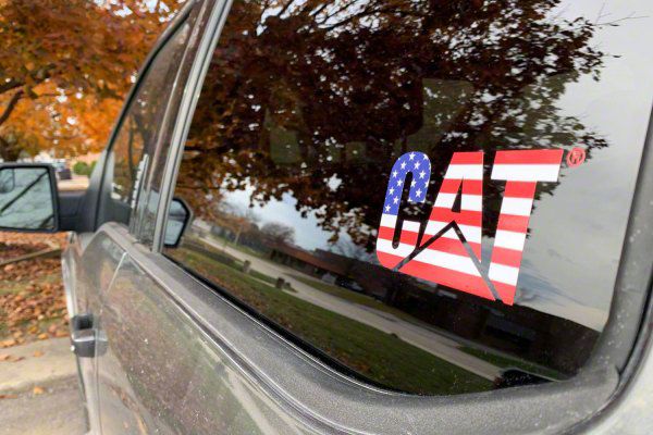 Premium CAT Decal. The CAT 5-Inch Vinyl Decal is an officially licensed product that provides a high-quality look representing the Caterpillar brand. This decal adds a touch of patriotism to any surface with its American flag design.