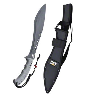 Application. This CAT 19-Inch Machete with Shoulder Strap Sheath is a universal fitment for outdoor tasks like camping, hunting, or yard work.