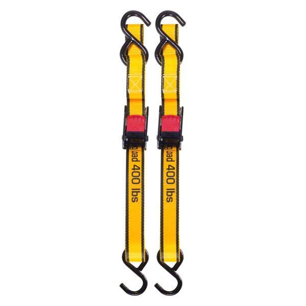 Each high visibility yellow strap offers 400 lb. working capacity, with rubber coated S-hooks and molded rubber covers on the cambuckle levers for added grip and comfort.