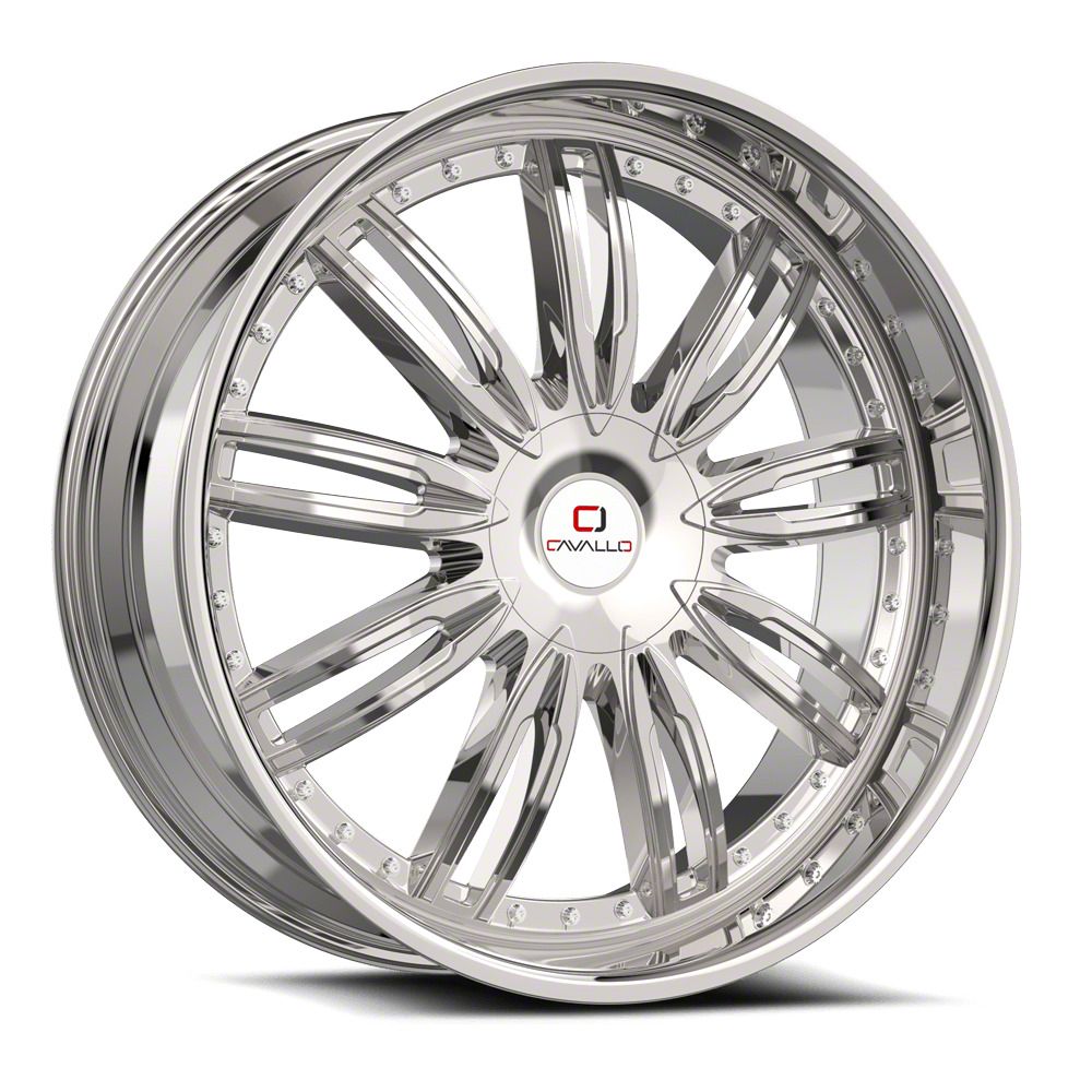 This 20x8.5 Cavallo CLV-54 Nano Chrome 5-Lug Wheel; 20x8.5; 35mm Offset is completed in a high-quality chrome finish that will make everyone take notice. Using a 3-stage process involving copper, nickel and chrome, you get a sensational bright wheel that can withstand the rigors of daily driving.