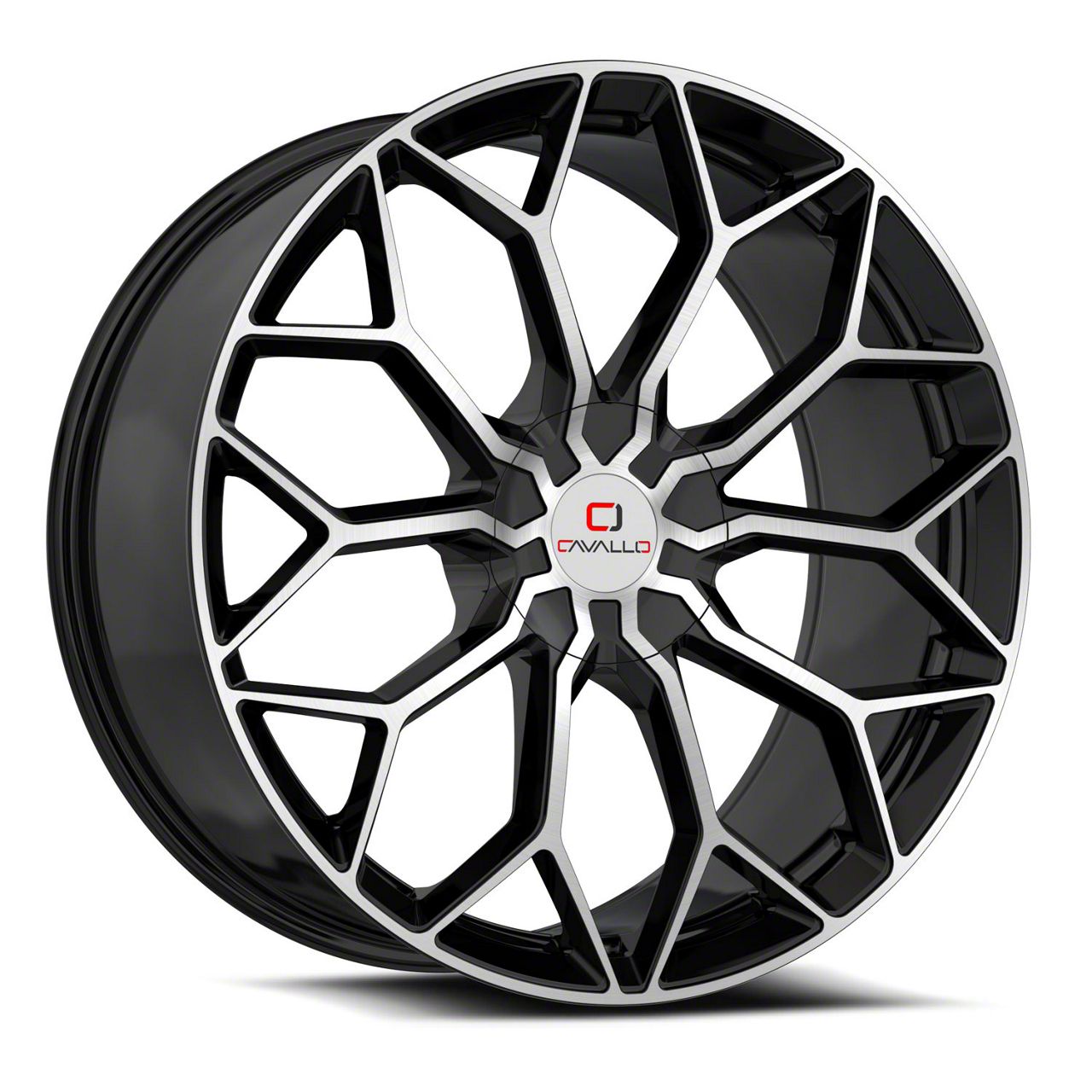 Cavallo CLV-44 Gloss Black and Machined 5-Lug Wheel; 26x9.5; 18mm Offset is a visually striking choice, offering a combination of rugged durability and modern styling. Its design complements off-road and sporty vehicles alike, enhancing the overall aesthetic appeal.