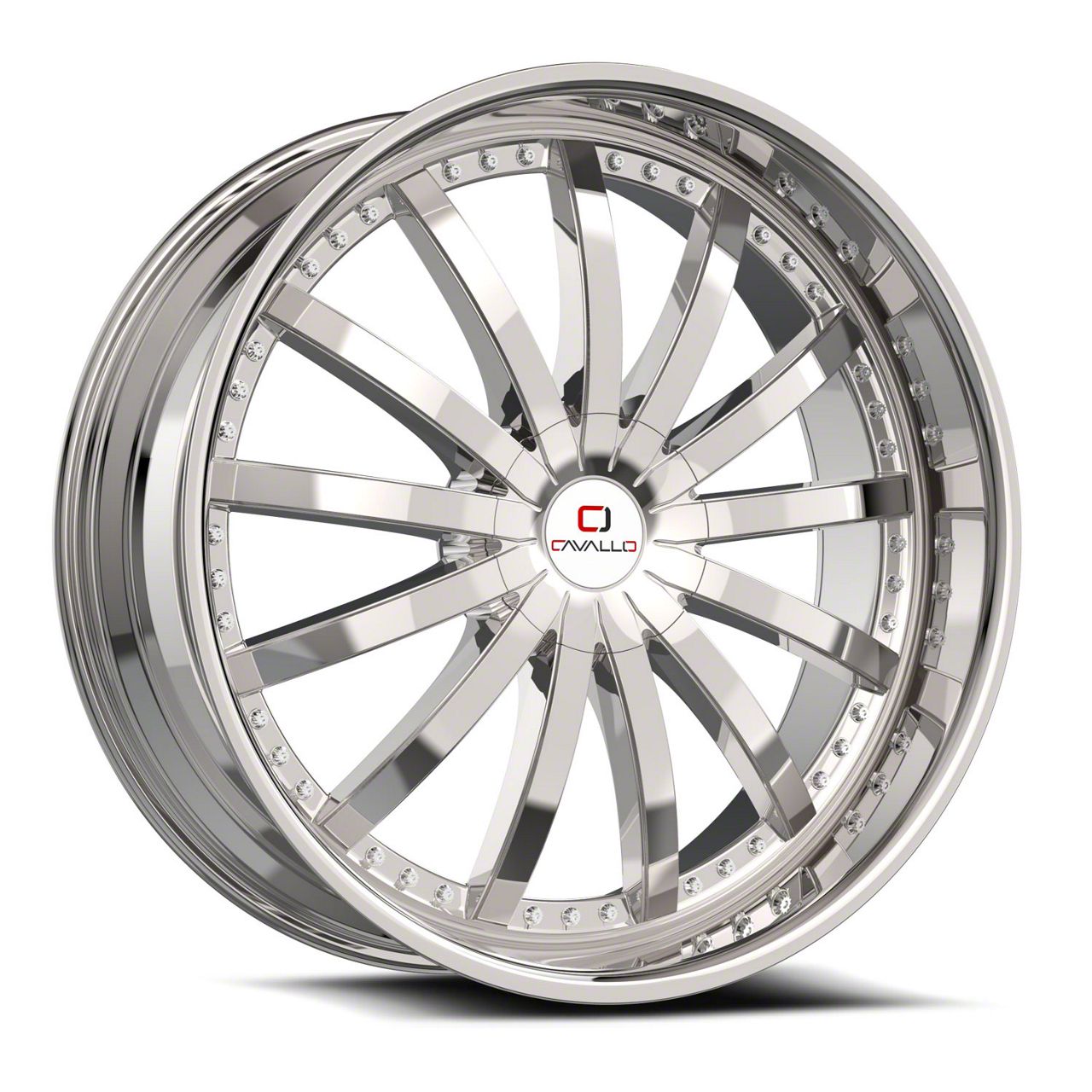 This 22x9.5 Cavallo CLV-53 Nano Chrome 6-Lug Wheel; 22x9.5; 25mm Offset is completed in a high-quality chrome finish that will make everyone take notice. Using a 3-stage process involving copper, nickel and chrome, you get a sensational bright wheel that can withstand the rigors of daily driving.