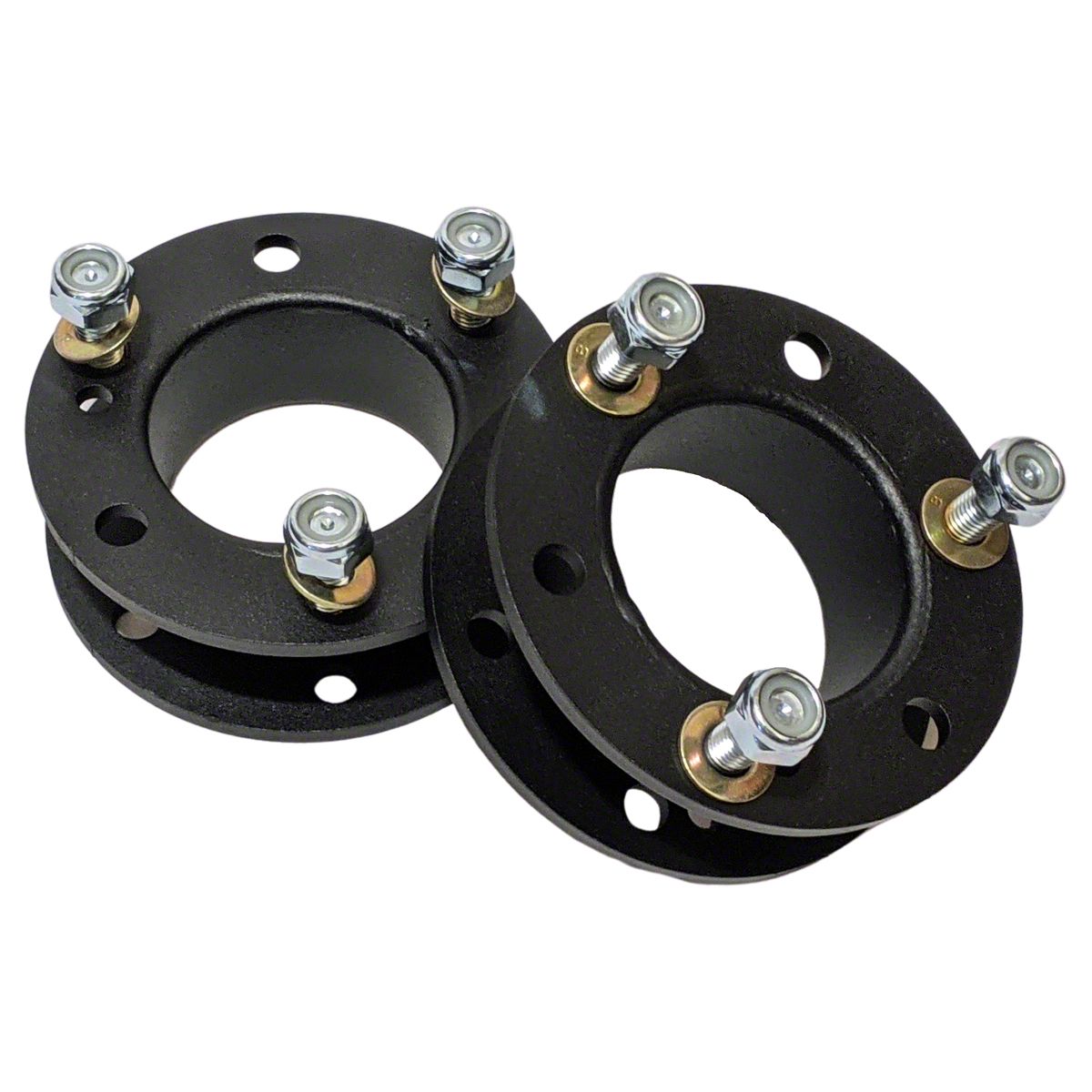 Features Durable Spacers. For heavy-duty construction, this kit’s spacers are made of 3/16-inch CNC laser-cut steel. The spacers are also crafted with OEM style grade 10.90 pressed-in studs and have their turn tables high-frequency pulse welded. Furthermore, each space is completed with a black powder coat finish for superior rust protection.