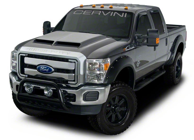 Application. This Cervini's Ram Air Hood fits 2011-2016 Ford F-350 Super Duty Models. It not only delivers functional airflow improvements through its built-in scoops but also transforms your truck’s presence with a bold, race-inspired profile built to impress on the road or at the show.