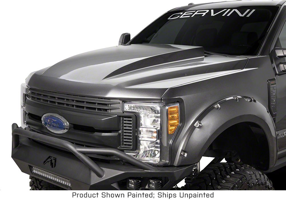 Application. The 1241 Cervini's 4-Inch Cowl Hood; Unpainted fits 2017-2022 F-250 Super Duty Models.
