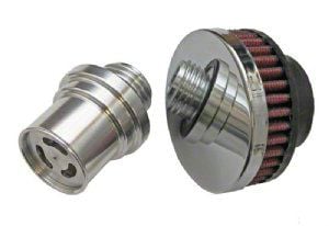 The proprietary internal baffle substantially reduces oil particle travel without affecting air flow. A double-seal O-ring is used to reduce the amount of force needed to create a positive seal, increasing seal life and eliminating leaks. The filter element is washable and has a variety of top finishes for great looks. The pre-oiled cotton fiber traps dirt particles without restricting air flow. Although this kit was designed for use in racing applications, it works and looks great on any engine compartment.
