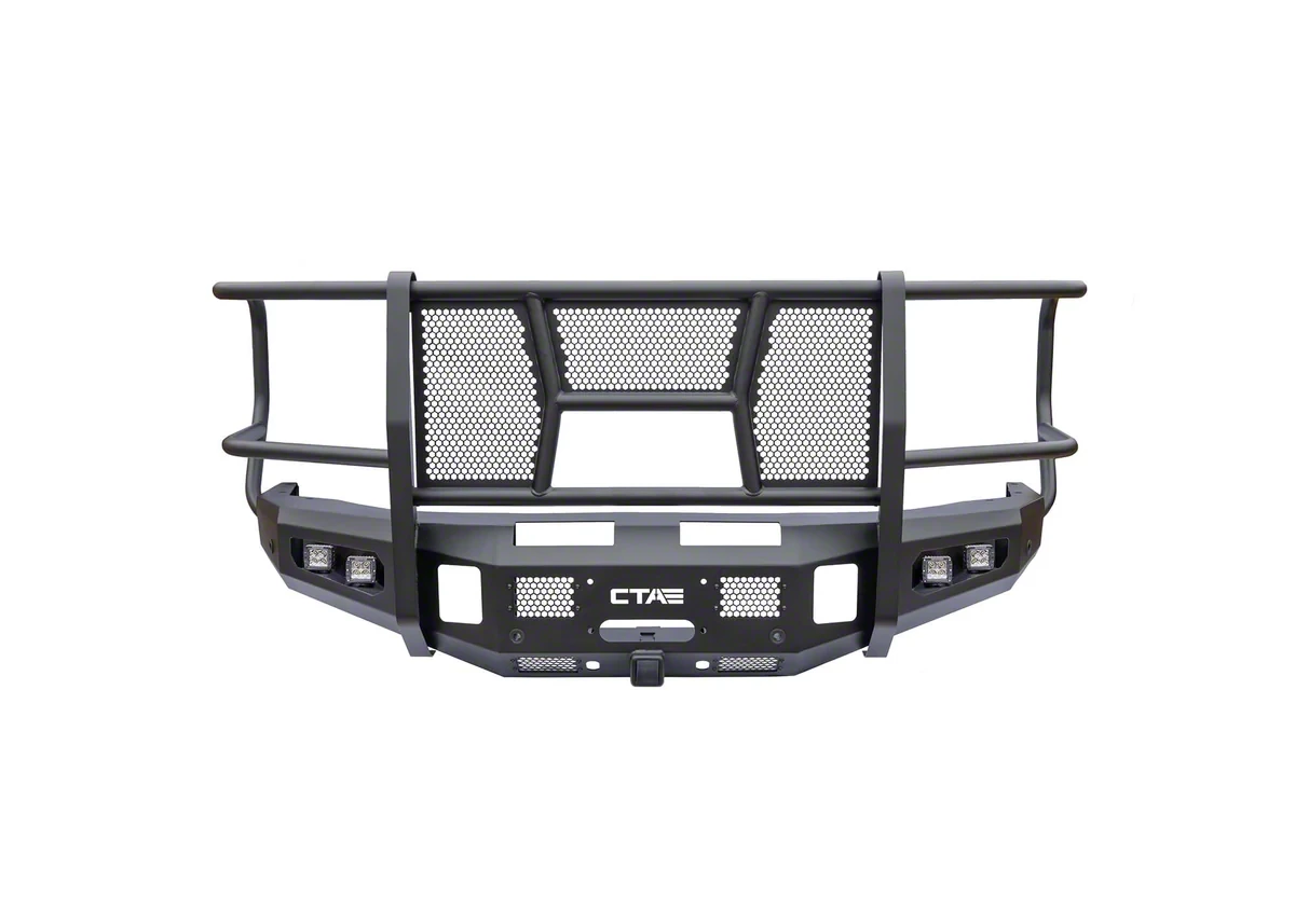 Front-End Protection and Recovery. This winch bumper replaces your stock bumper with a rugged, steel-reinforced design that accommodates a winch and protects vital front-end components. The full guard bars shield headlights and grille while offering mounting points for auxiliary lights.