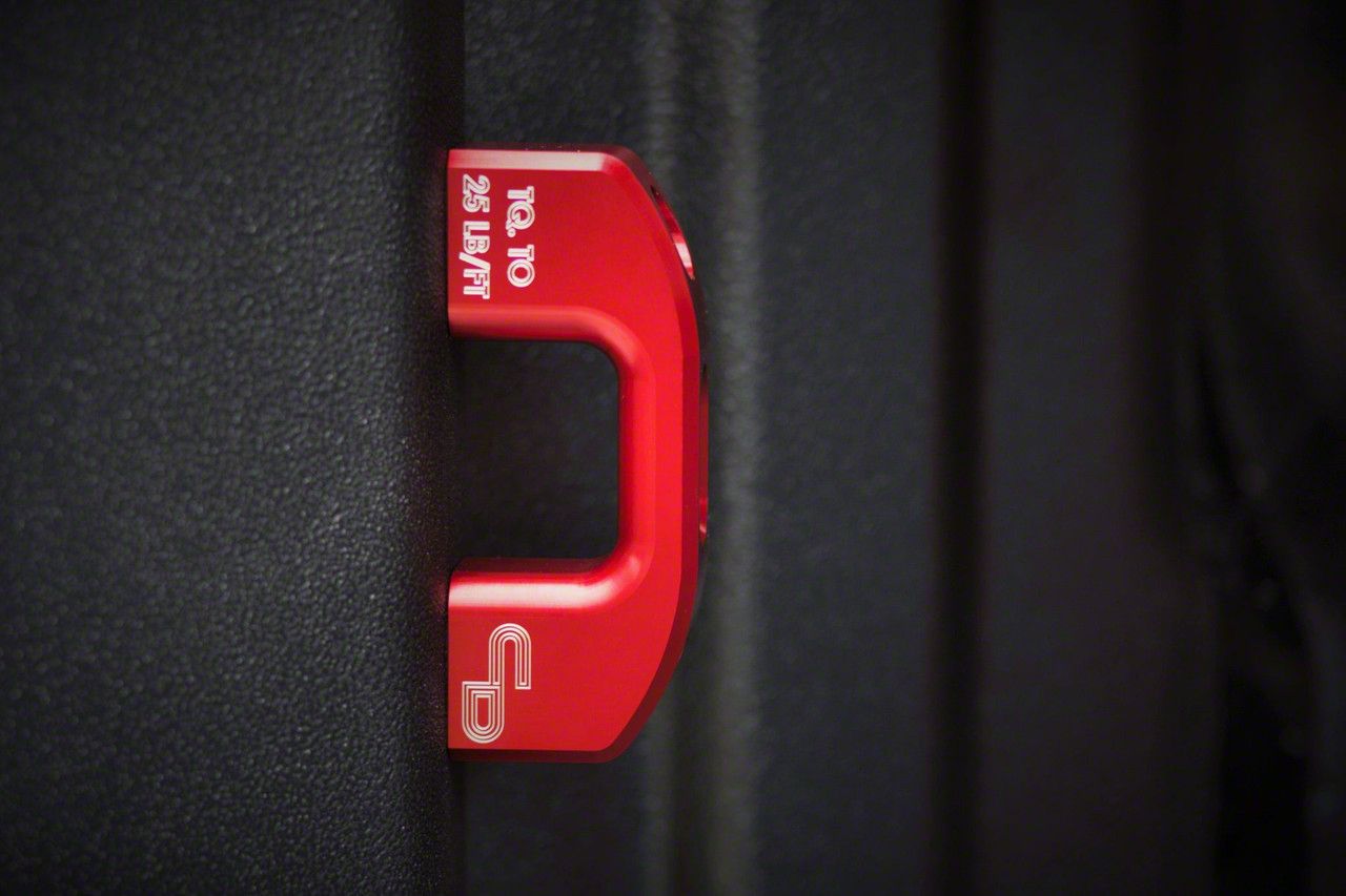 High Grade Quality. Crafted with billet aluminum, the Bed Tie-Down Anchors are built to withstand the rigors of daily use and provide long-lasting reliability. The red powder coating not only adds a touch of style but also enhances the anchors' resistance to rust and corrosion, ensuring they remain in top condition even in harsh conditions.