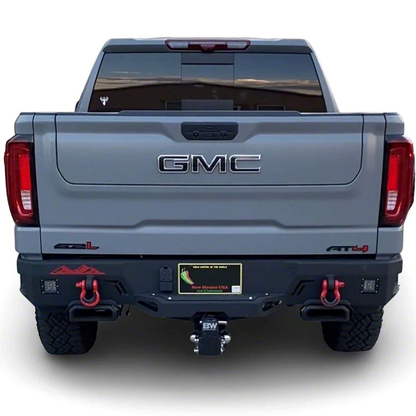 Fabricated Protection and Beauty. Looking for the perfect bumper for your Sierra? Check out this Chassis Unlimited Octane Series Rear Bumper. This tough, full-width bumper is fabricated from 3/16-inch USA steel and is designed to protect your truck from whatever you throw its way. Plus, it comes with steps and D-ring mounts for added convenience. This bumper is also tailored specifically for all 2019-2026 GMC Sierra 1500s, so, rest assured it will fit like a glove.