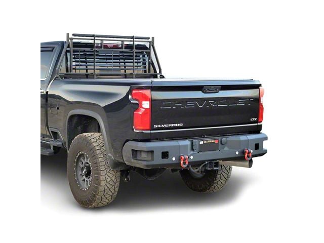 Application. The Chassis Unlimited Attitude Series Rear Bumper; Not Pre-Drilled for Backup Sensors; Black Textured fits 2020-2026 Chevrolet Silverado 3500 HD models.