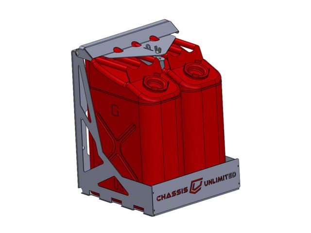 Application. A Chassis Unlimited Dual Fuel/Water Can Mount is expertly structured to be suitable with any vehicle.