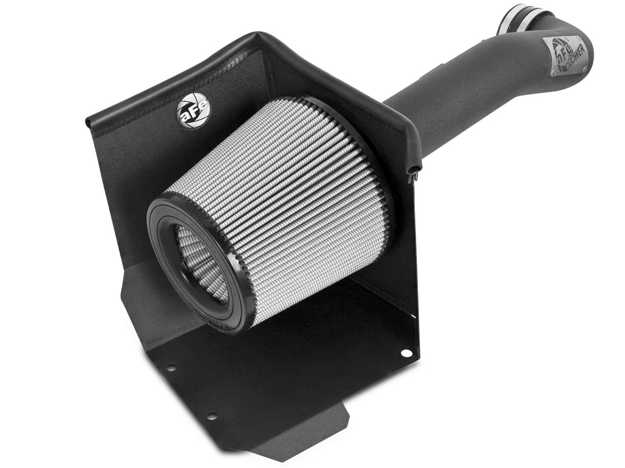Infrastructure in Design. The AFE Magnum Force Stage 2 Pro Dry S Cold Air Intake - Wrinkle Black is a fully-integrated system. It snaps right into place, fitted with durable Mandrel Bent tubing and a Black Wrinkle Powder-Coated Aluminum Construction.