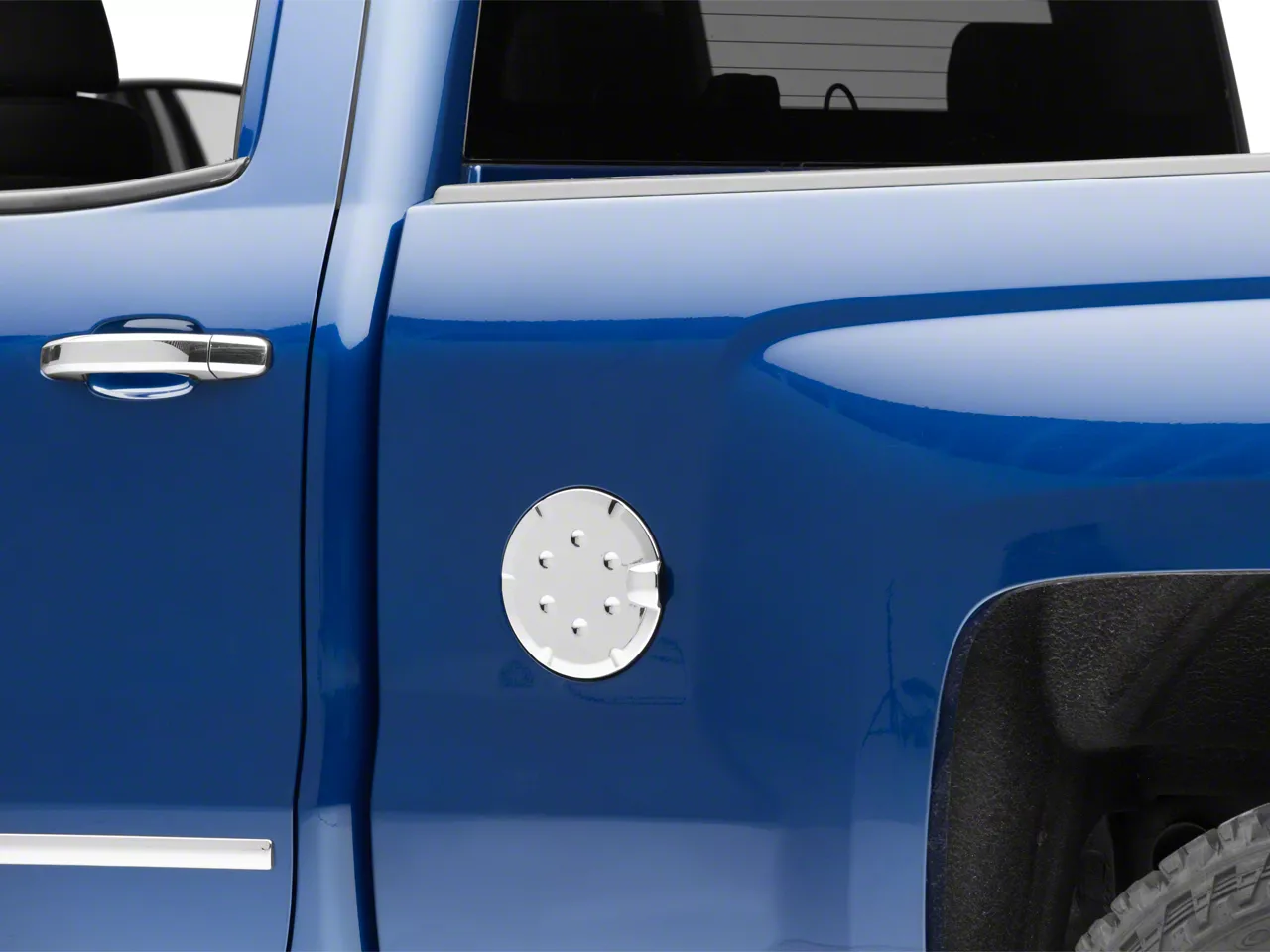 Fast Customizing. Give your fuel tank cover the clean, bright, liquid gleam of chrome with this Chrome Fuel Tank Door Cover, a crisp-looking addition to your 2014-2018 Chevy Silverado that matches both the existing chrome trim on the vehicle and other aftermarket chrome trim parts. The ABS Chrome construction stands up sturdily to day to day use while topping up your pickup's gas tank, and holds a high sheen with just a moment of polishing. It fits right over the stock gas door, attaching with double-sided automotive grade tape so that you don't need to modify your truck in order to enjoy a thrilling customized look.