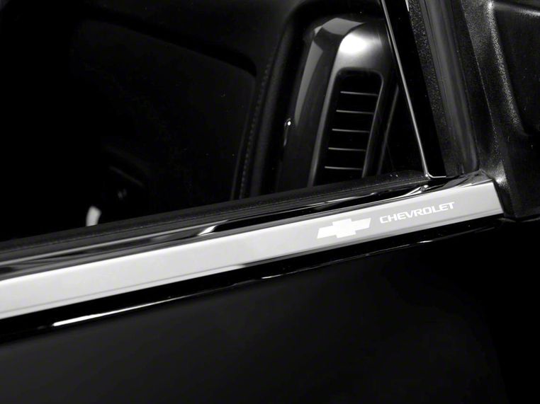 Bowtie Logo. Show your Chevy pride proudly by dressing up your 2007 to 2013 Chevy Silverado Extended or Crew Cab with this Stainless Steel Window Trim with the infamous Chevy Bowtie Logo. This window trim is great for Silverado Extended and Crew Cab drivers that want their prize possession to turn some heads.
