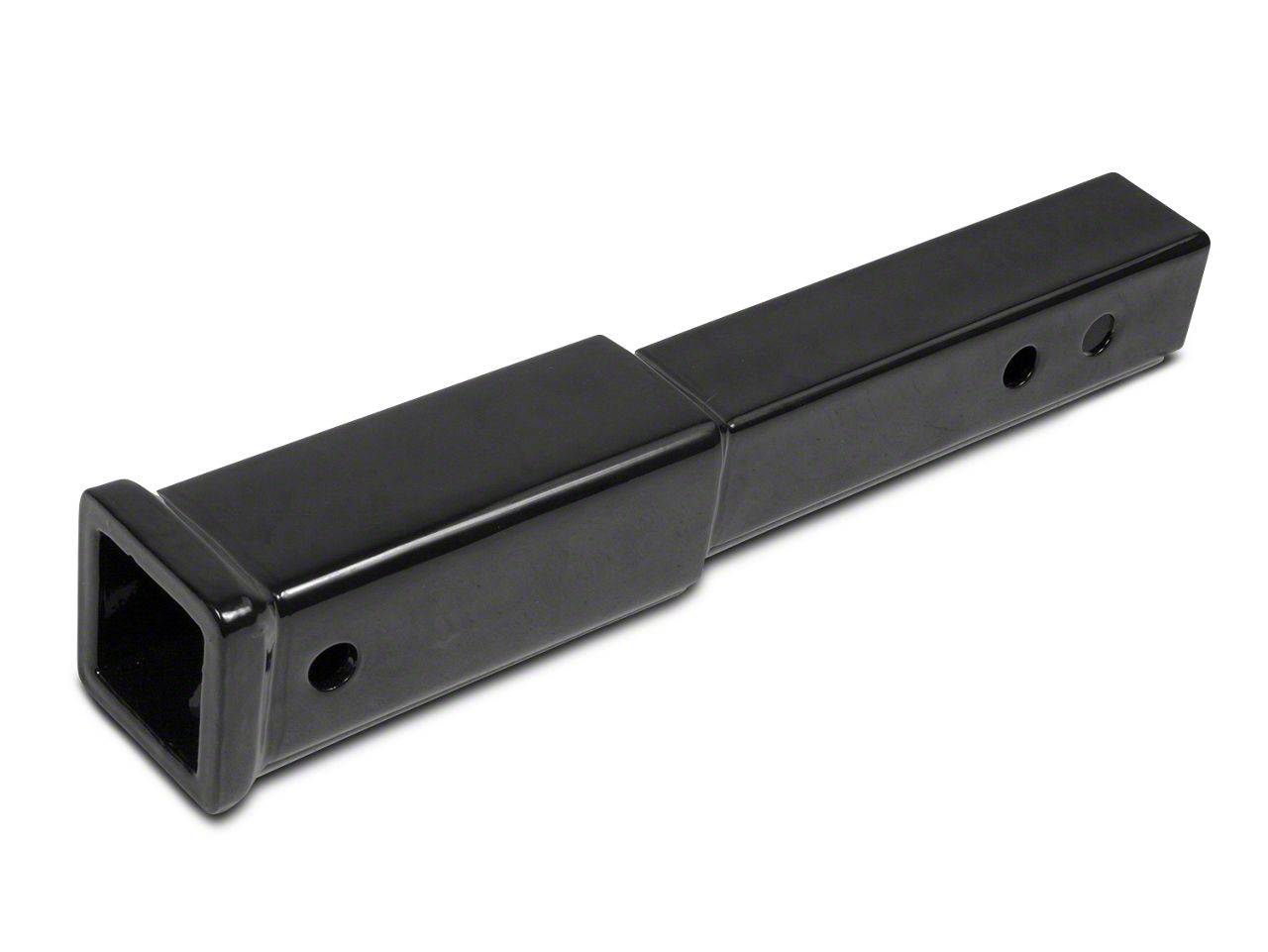 Quality Construction. Simple and beefy, the Rugged Ridge Hitch Receiver 12-inch Extension is manufactured out of thick, solid steel, precision cut to allow installation of any mount designed to use a standard 2" hitch receiver. It is coated in a hard, chip-resistant black powder-coat finish with a semigloss surface. This component is covered by a 5-year limited warranty from the manufacturer.