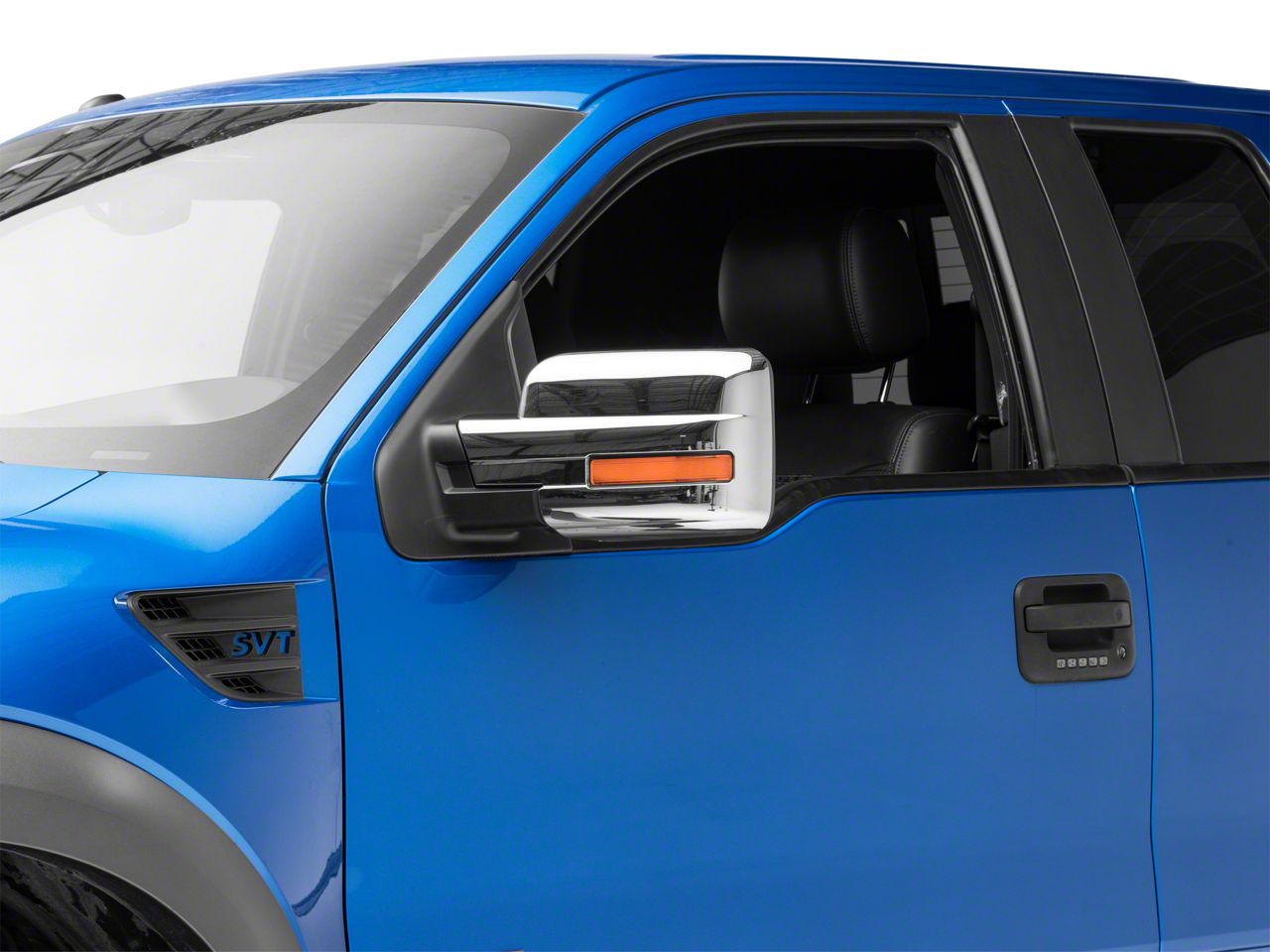 Clean, Chrome Styling. An excellent way to give your 2009-2014 Ford F-150 the clean, classic styling of chrome is by installing a pair of Full Size Chrome Mirror Covers. Specifically designed for F-150's equipped with mirror mounted turn signals, these Mirror Appliques install in just moments to create an entirely new look for your truck. These Covers perfectly complement your existing factory chrome trim and look great when accented with other aftermarket chrome accents.