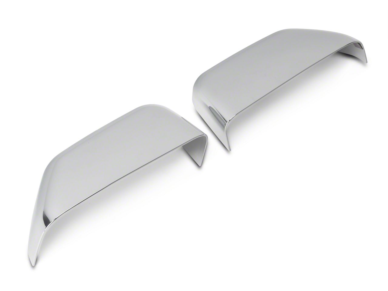 Classic Chrome Styling. A pair of Chrome Top Half Mirror Covers of are a great way to add the classic clean look of chrome to your 2015-2017 F-150. Designed for F-150s with towing side mirrors, these Mirror Appliques install in moments to create an entirely new look for your truck. They'll easily complement your factory chrome and will also look stunning when accented with other aftermarket chrome trim.