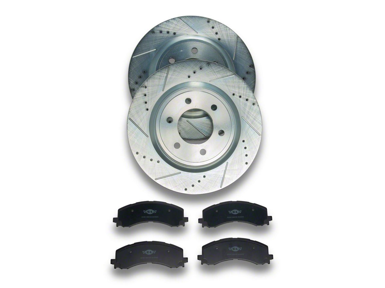 Increased Braking Performance. A great way to upgrade the stopping power of your 2021-2026 Ford F-150 is by installing C&L Super Sport HD Rotor and Pad Kit. Including Cross-Drilled and Slotted Front Brake Rotors, as well as a set of matching Ceramic/Metallic Brake Pads, this Front Brake Kit will significantly improve the braking performance of your truck, when compared to your original factory brakes. This C&L Combo Kit is ideal for those who want high-performance braking power without breaking open their piggy banks.