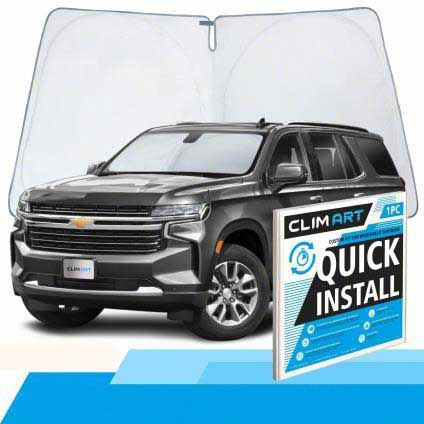 Interior Heat Protection. The Windshield Sun Shade is designed to shield your Tahoe's interior from excessive heat and sun exposure. Custom fit for 2021 to 2026 models, it helps significantly reduce interior temperature when parked in direct sunlight. By blocking harmful UV rays, it protects dashboards, seats, and trim from fading and cracking.