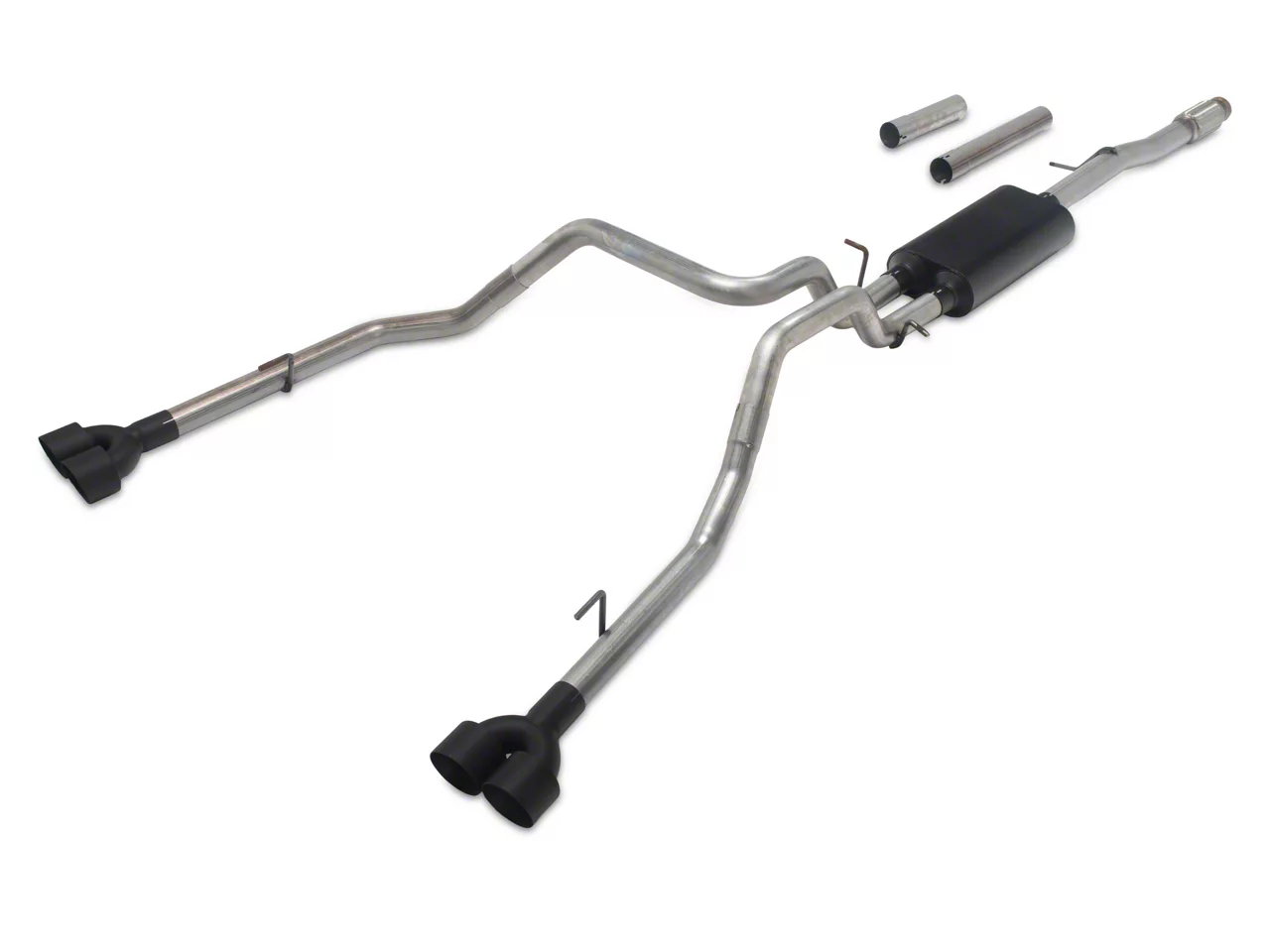 C&L Dual Exhaust System with Black Tips; Rear Exit (19-26 5.3L Silverado 1500 w/ Factory Dual Exhaust)Find parts that fit my vehicle