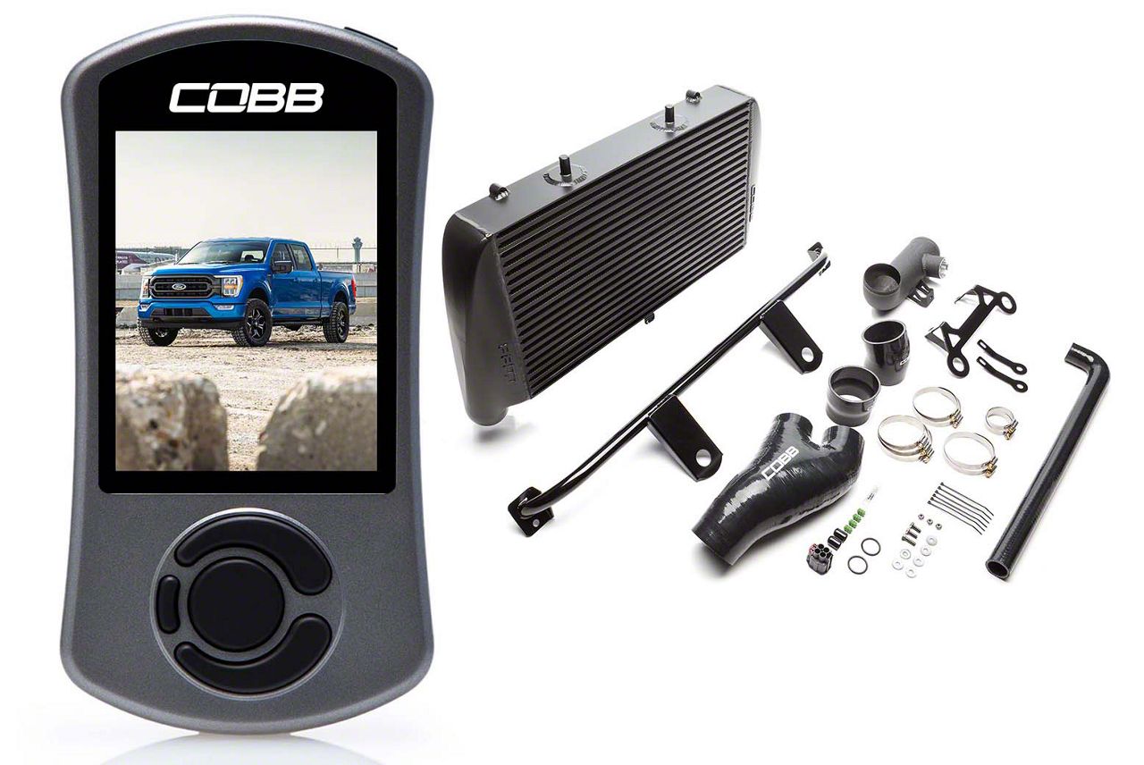 Application. The Cobb Stage 2 Power Package with Front Mount Intercooler; Black fit all 2021-2022 3.5L EcoBoost Ford F-150 models excluding Raptor models.