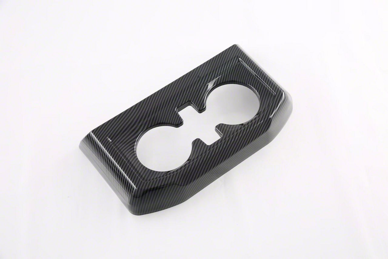 Stylish and Durable Cup Holder Trim. The Cobra-Tek Interior Rear Cup Holder Cover Trim adds a sleek and modern touch to the rear interior of your 2021-2026 Ford F-150 SuperCab or SuperCrew. Featuring a glossy black carbon fiber finish, this trim elevates the look of your vehicle's cup holders while providing durable protection.