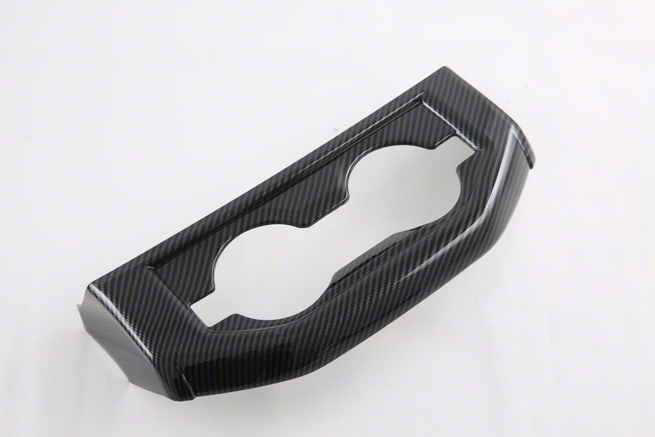 Construction and Appearance. Made from high-quality ABS plastic, this cover trim is both durable and lightweight. The carbon fiber print finish gives it a premium look, enhancing the overall appearance of your vehicle's rear cup holder. The trim comes in its original, unopened packaging, ensuring it arrives in perfect condition.