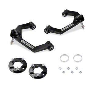 Performance and Comfort. Elevate your off-road experience with the Cognito Motorsports 2.50-Inch Standard Front Leveling Kit. This kit offers a precise 2.50-inch lift, allowing you to comfortably run up to 35x12.5-inch tires, enhancing both the look and performance of your vehicle. Designed with a focus on ride quality, this kit retains sufficient droop travel while ensuring proper articulation with the corrected joint angle.