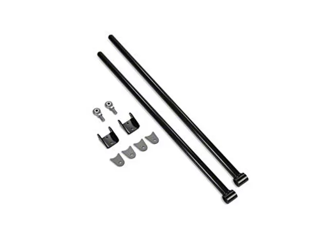 Robust Construction. Crafted from sturdy 1.75-inch by 0.120-inch wall mild steel, these bars are built to handle tough terrains. Equipped with FK Heim joints and polyurethane bushings, the traction bars offer exceptional durability and performance. Their semi-gloss black powder-coated finish not only adds a sleek look but also provides protection against corrosion.