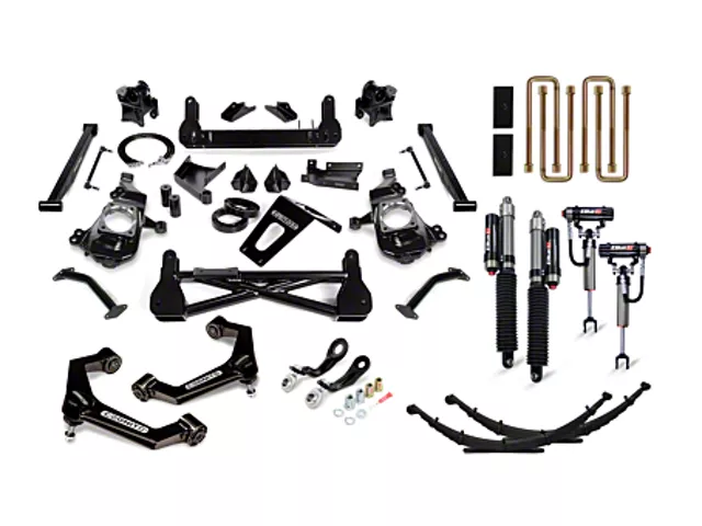 Full Lift Kit. Made for the Chevrolet Silverado 2500 HD, this Cognito Motorsports Elite Lift Kit is a full lift kit comprising of control arms, a Pitman idler arm support kit, reservoir shocks, a replacement Deaver spring, a compression strut component box, and a U-bolt and block kit. This lift kit is made in the USA and comes in a glossy black finish.