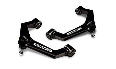 Improved Replacement. Made for the Chevrolet Silverado 2500 HD models, these Cognito Motorsports Ball Joint SM Series Upper Control Arms come in pairs with a glossy black finish. Built-in the USA, these upper control arms are improved direct replacements for your broken, cracked, or warped stock upper control arms and offer a corrected ball joint angle with added caster for less wear and tear compared to stock. These UCAs also use polyurethane bushings that are hardier than stock for a longer-lasting part.