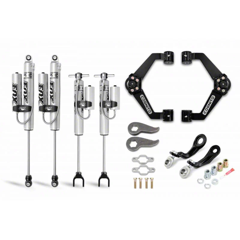 Works Together. Additionally, the kit comes equipped with a 0.5-inch front shock extender kit, a Cognito Torsion Bar Adjuster Key Kit, and a Cognito Ball Joint SM Series UCA Kit, all of which work together to guarantee adequate droop travel and improve overall vehicle performance.