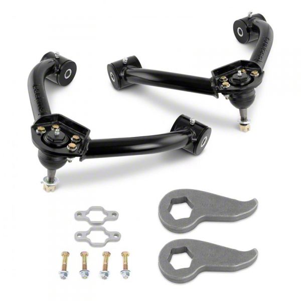 Confident Off-Roading. Achieve a more commanding presence on and off the road with this Cognito Motorsports 3-Inch Standard Leveling Kit designed to elevate your Sierra 3500 HD to new heights. This meticulously engineered kit provides a 3-inch lift, perfectly leveling the front of your truck with the rear. Say goodbye to that factory rake and hello to a more aggressive and balanced stance. By leveling the front of your ride, you gain improved ground clearance and the ability to accommodate larger tires, allowing you to conquer any terrain with ease. This kit maintains your vehicle's factory ride quality while enhancing its capability, ensuring a smooth and controlled driving experience.