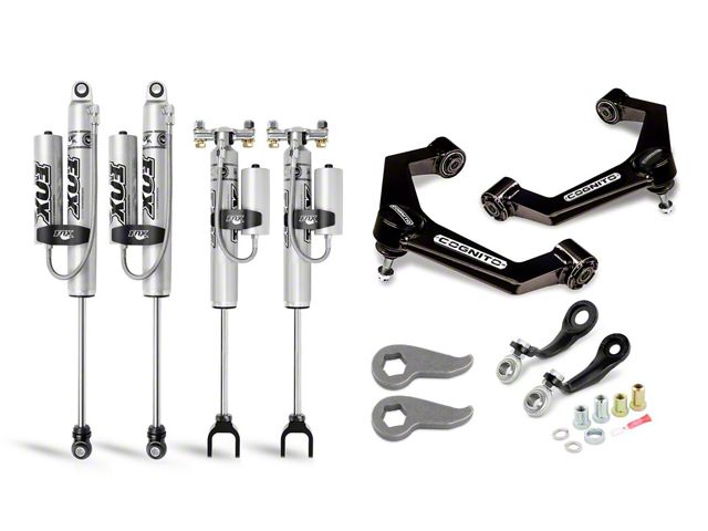 High-Quality Components. The Cognito 3-Inch Premier Leveling Lift Kit with FOX PSRR 2.0 Shocks contains components made of top-quality materials known for their durability and resistance. All parts of the kit are made in the U.S. and won’t rust, corrode, or succumb to damage easily. The FOX shocks are made of aluminum and offer exceptional heat dissipation.