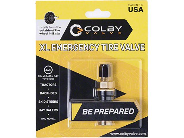 Description. The Colby Valve XL Emergency Valve was designed to replace broken valves stems in larger wheel openings. Sized to fit 5/8 in (.625) often found on farm and construction equipment, commercial trucks, etc.