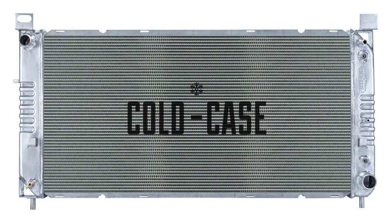 Impressive Cooling Performance. The Cold Case Aluminum Performance Radiator comes with a massive, dual-row design that is intended to meet the demands of performance driving conditions. This radiator features 16 corrugated fins per inch for more surface area and to deliver a more efficient heat exchange than factory radiators. No matter how intense the driving conditions may get, this radiator will help your truck power through them with worry-free engine performance.