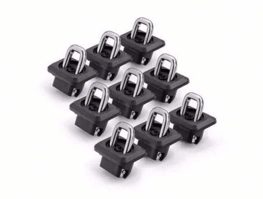 Installation. These tie-down anchors are designed for easy, bolt-on installation with no drilling or modifications required. Simply insert them into the stock oval holes for a secure and reliable setup, making cargo management more convenient and efficient.