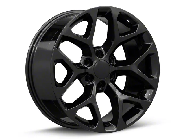 Chevy Snowflake Replica Gloss Black 6-Lug Wheel; 20x9; 27mm Offset. The Chevy Snowflake Replica Gloss Black 6-Lug Wheel offers a striking balance of style and refinement. Its unique design accentuates the vehicle's aesthetic, while the premium construction underscores its robust nature. This wheel is a perfect choice for those seeking both elegance and a strong visual statement.