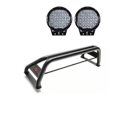 Black Horse Off Road Classic Roll Bar Kit Black Steel W/ Set of 9" Black Round LED Light Not Compatible with Tonneau Cover