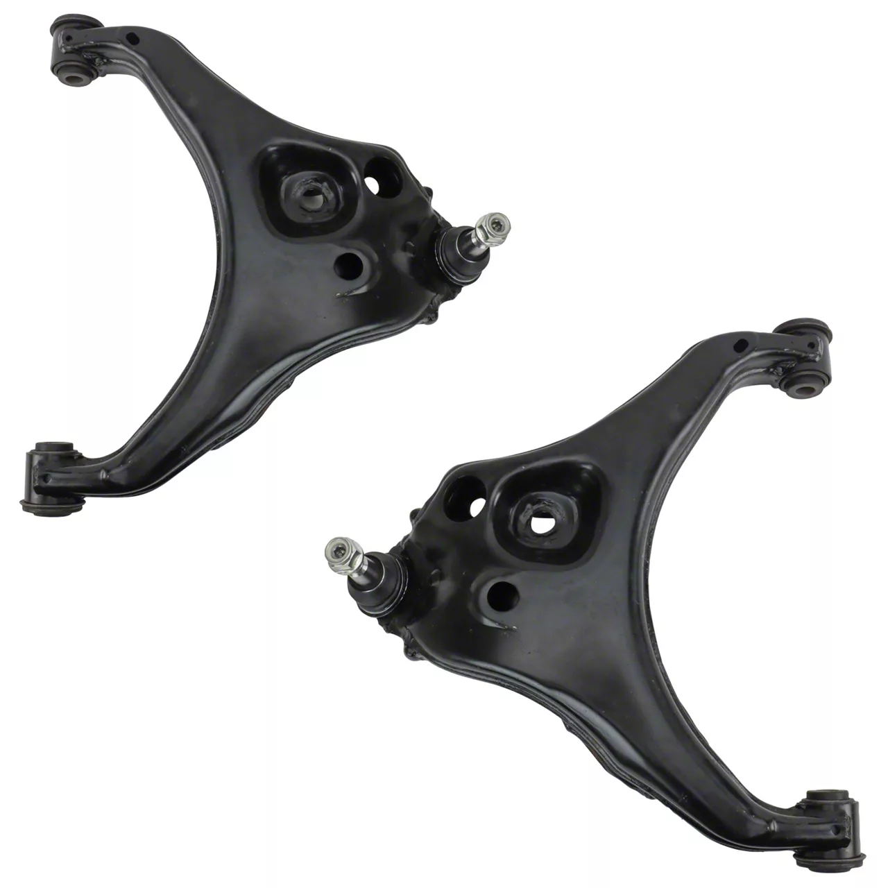 Construction and Features. Featuring a glossy black finish, these front lower control arms are built to OE-compatible specifications for a seamless fit. Each arm includes a pre-installed ball joint, ensuring durability and long-lasting performance in various driving conditions.