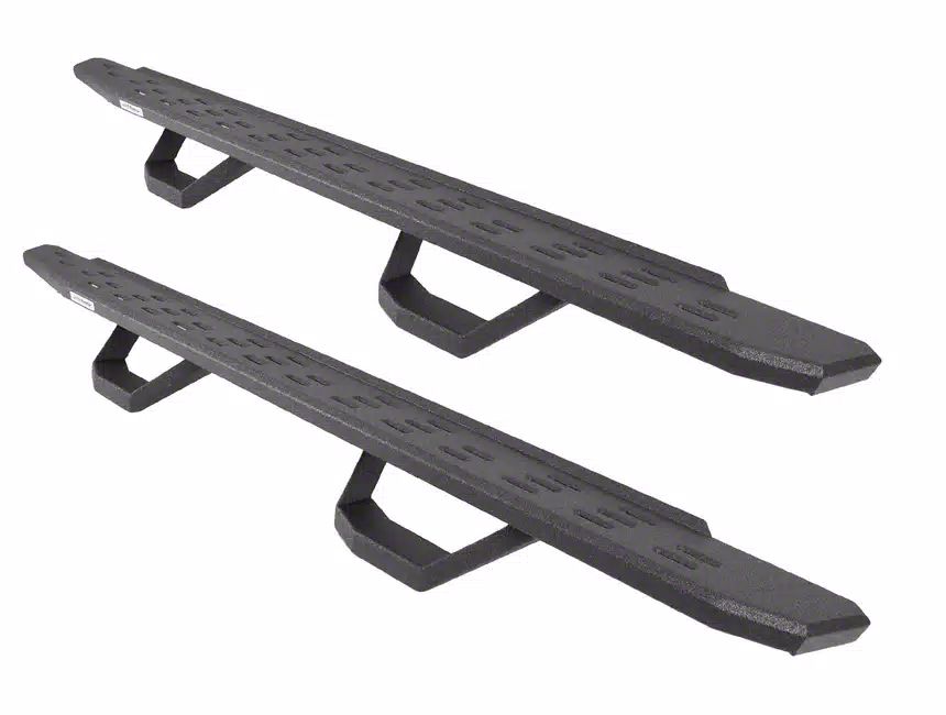 Enhanced Accessibility. The Go Rhino RB30 Running Boards with Drop Steps provide an additional step area, making it easier to enter and exit your vehicle. These running boards include removable 4-inch drop steps, ensuring convenience and flexibility for users. They are also impact and corrosion-resistant, providing long-term reliability.