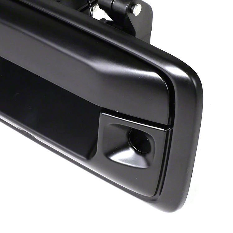 Tailgate Handle with Backup Camera and Key Hole. This tailgate handle is designed to replace old or damaged tailgate handles, offering enhanced functionality with an integrated backup camera and keyhole. It's engineered to fit perfectly, ensuring seamless integration with your vehicle.