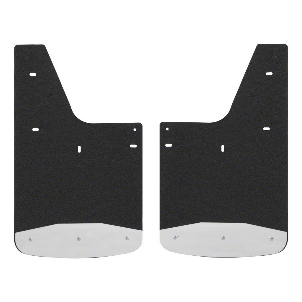 Whether you're on the job or off-roading through the wilderness, it doesn't take long for rocks and other debris to wreak havoc on the body of your truck. LUVERNE Textured Rubber Mud Guards are the perfect solution for maintaining that pristine, professional look. For the front or rear of the truck, these custom mud flaps add style and body protection. They are constructed from heavy-duty black rubber that stands up to road debris and sheds water with ease. They feature 18-gauge stainless steel plates to help protect the bottom edge and extend the life of the mud flaps. With their 3/8" thick, recycled rubber construction, Textured Rubber Mud Guards easily deflect everything from mud to gravel, protecting the body of your truck from scratches, chips and scuffs. They are also made to add a stylish accent to your truck, featuring stainless steel plates along the bottom edge of each flap. The plates are made from 18-gauge stainless steel to provide a heavy-duty, rust-resistant shield, and they feature a bright, high-polish finish for a long-lasting shine. The textured finish of the rubber mud flaps is also designed to easily hide minor scuffs and scratches and maintain a clean appearance. For an easy installation and a custom fit, these truck mud flaps are made vehicle-specific. This particular set fits specific years of the Chevy Colorado and GMC Canyon (see application info to verify fitment). They install with corrosion-resistant fasteners and high-strength steel mounting brackets with a galvanized finish for long-lasting durability. Universal mud flaps are also available.