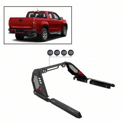 Improved Utility. Enhance the style and functionality of your Colorado with the Vigor Roll Bar with 5.30-Inch Black Round Flood LED Lights; Black. Designed to provide a rugged and illuminated touch, this roll bar adds both visual appeal and increased visibility to your truck. The Roll Bar comes equipped with integrated Flood LED Lights, offering powerful illumination for your off-road adventures. The black housing enhances the overall appearance and gives your Colorado a more aggressive and customized look.