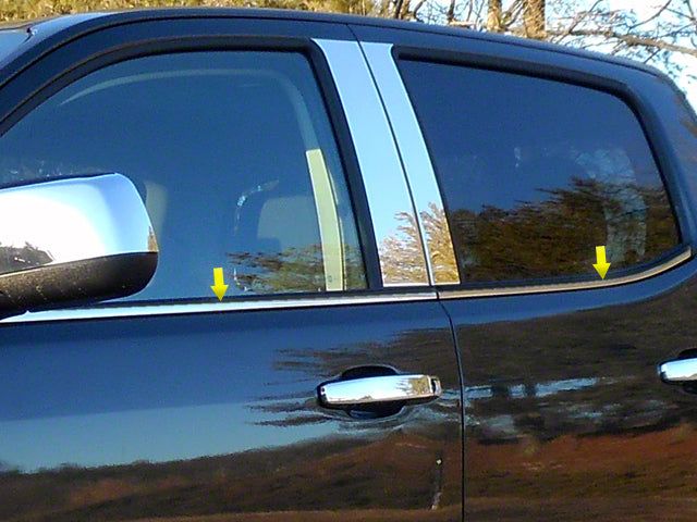 Polished Stainless Steel. Made from high-quality stainless steel, these window sills boast a mirror-polished, chrome-look finish that brings a sleek and elegant appearance to your vehicle. Installation is a breeze thanks to the quick, peel-and-stick application. Each sill is backed with pre-installed 3M acrylic foam adhesive, guaranteeing a strong, secure bond without the need for professional help.