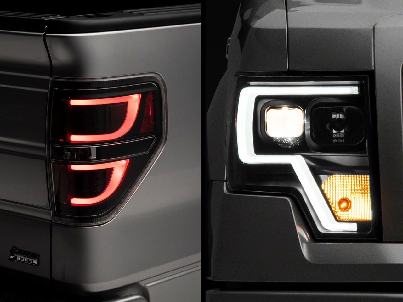 Application. This Raxiom Projector Headlights with LED Accent and G2 LED Tail Lights Combo Kit is designed to fit 2009-2014 Ford F-150 Styleside models equipped with Factory Halogen Headlights and Tail Lights, excluding Raptor. Does not fit HID models.