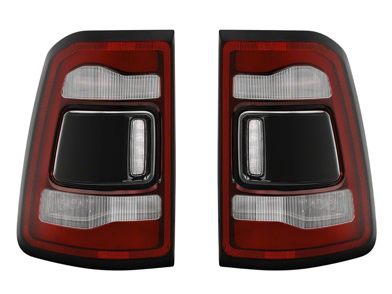 Application. These OE Rebel Style LED Tail Lights; Black Housing; Red/Clear Lens are designed to fit 2019-2024 RAM 1500 equipped with Factory LED Tail Lights and Blind Spot Sensors. Sold as a pair, driver and passenger side lights are included.