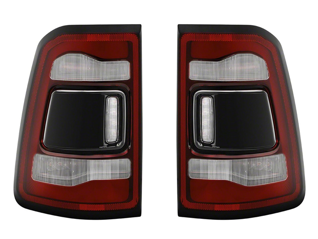 Rebel Styling. These OE Rebel Style LED Tail Lights will add a more intimidating appearance to your RAM 1500's exterior. Featuring black housings with red and clear lenses, these Tail Lights will make an impactful visual statement. Whether your RAM is your dedicated daily driver or your weekend toy, these Rebel Style Tail Lights will be sure to set your 1500 apart from all the rest.